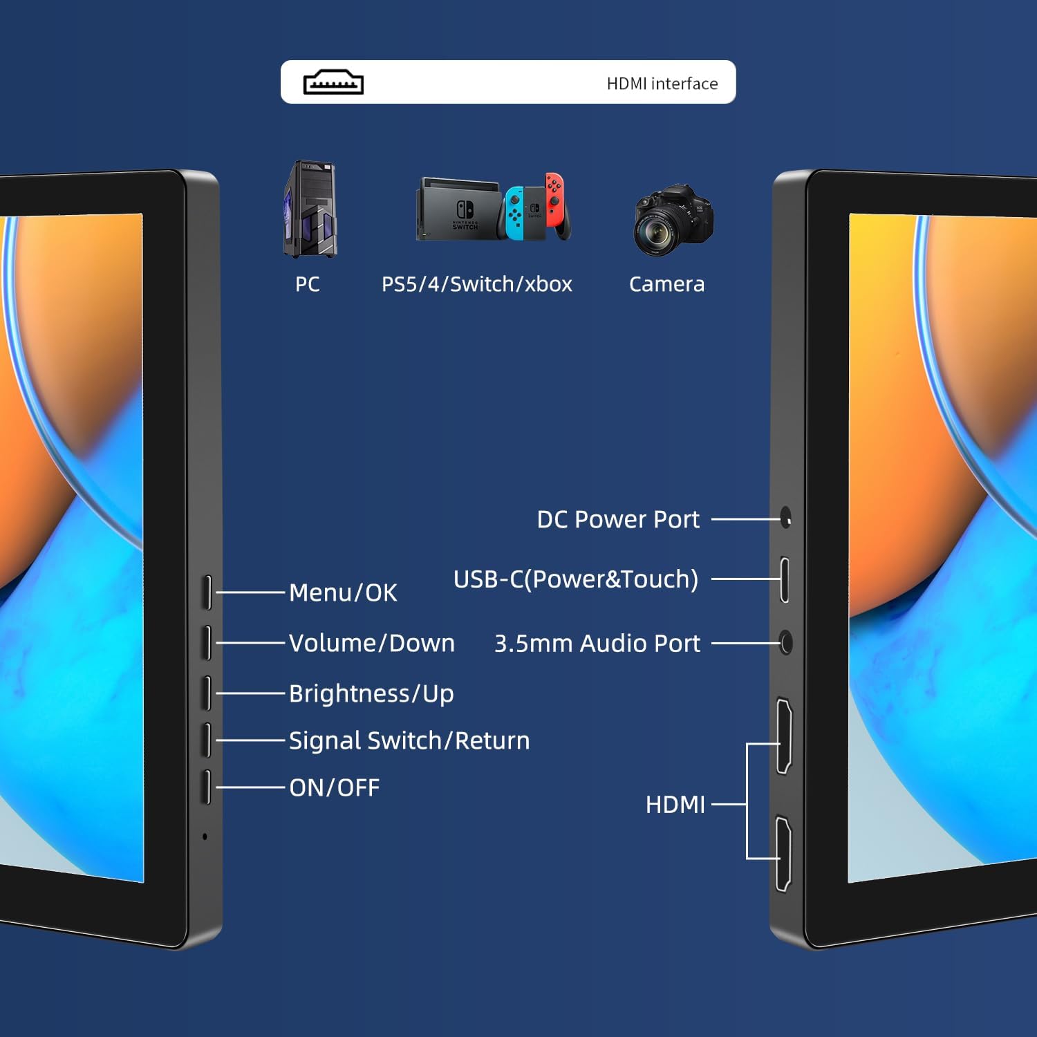 | ການເຊື່ອມຕໍ່ | 1x HDMI, 1x USB-C (Power & Touch), 1x 3.5mm Audio Jack, 1x DC Power Port |